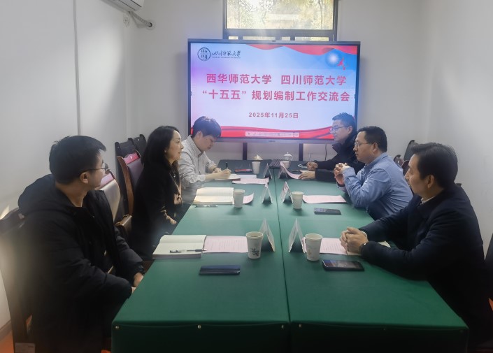 2025年11月25日下午,西华师范大学发展规划与目标管理督查办公室主任王迎丰一行到我处,围绕“十五五”规划编制工作开展专题调研交流。座谈会由四川师范大学发展规划与学科建设处处长任平主持。